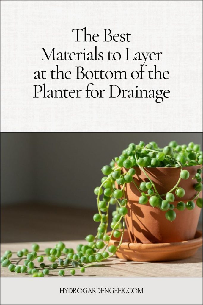 Although these materials do not act as drainage on their own, they help improve your drainage system’s performance. Placing a layer of landscape fabric or mesh over your gravel or rocks keeps potting mix from sifting down and clogging drainage holes. Water still flows through, but the soil stays in a separate layer, your pot stays cleaner and more efficient.